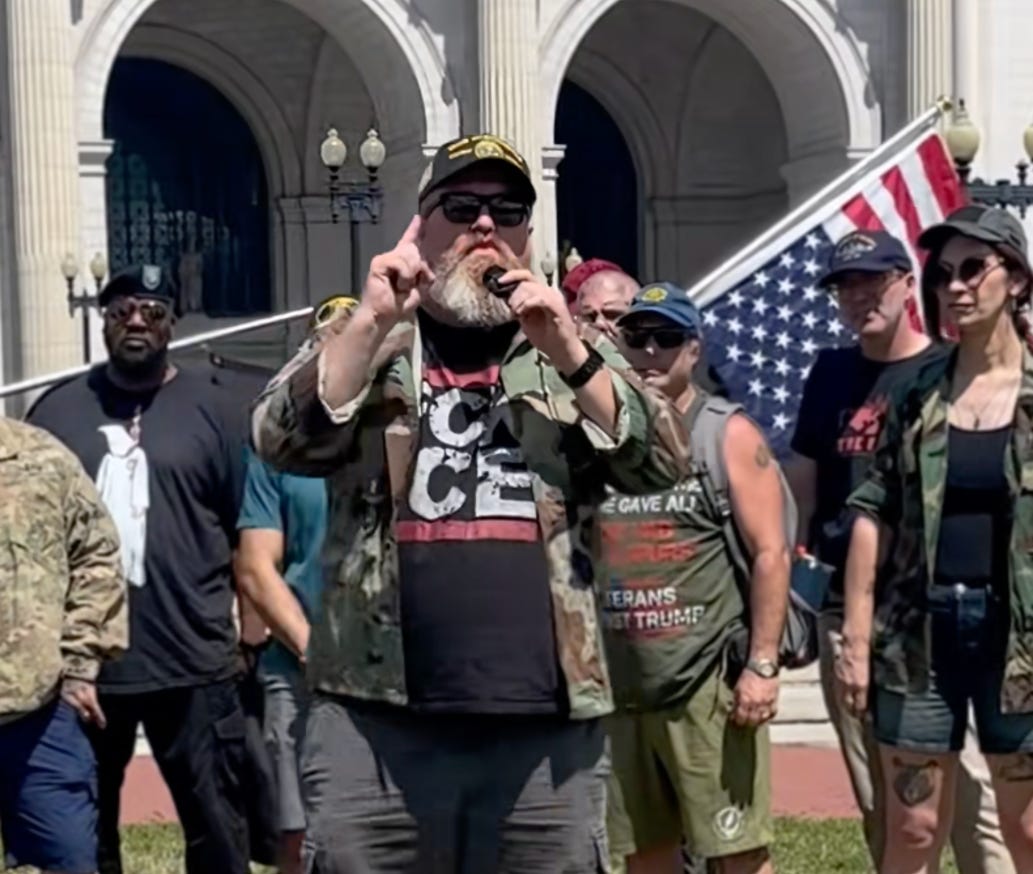 They employ a couple of different strategies, such as playing the speech from former Joint Chiefs Chairman General Milley, which explains the oath military personnel take to the Constitution and not to “a man” on repeat via loudspeakers.