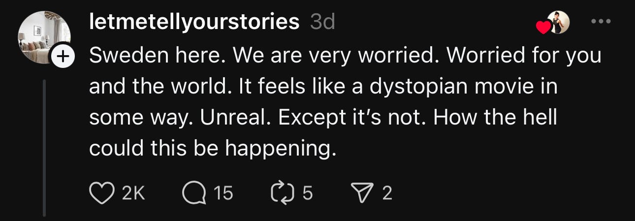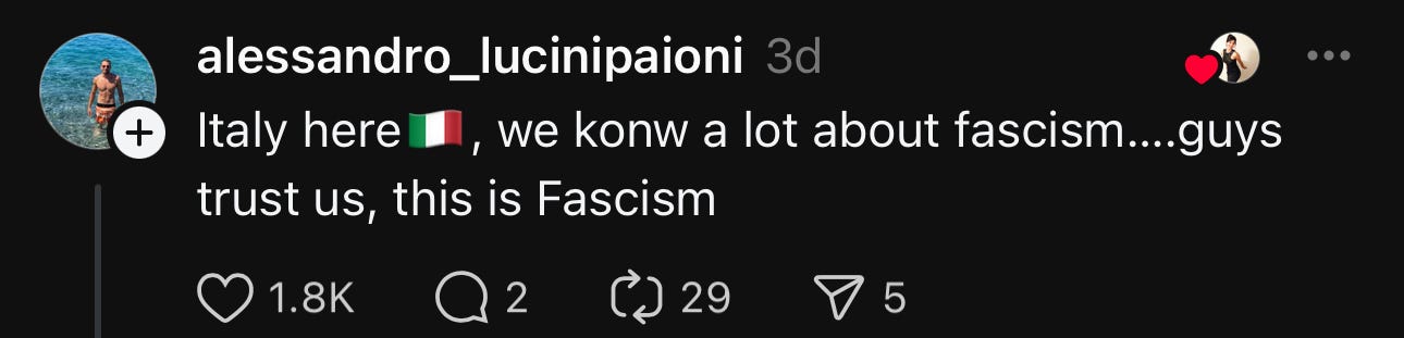America isn’t the only country that is headed towards fascism right now - Hungary, Argentina, Italy are all front runners as well. The only difference is that they are not considered to be a global super power, we are.